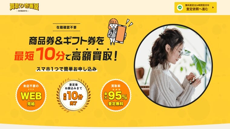 「買取り壱番屋」という名のサービスは、商品券やギフト券を迅速に評価し、その評価金額を支払うことで現金を得られる手法を採用している事業者です。