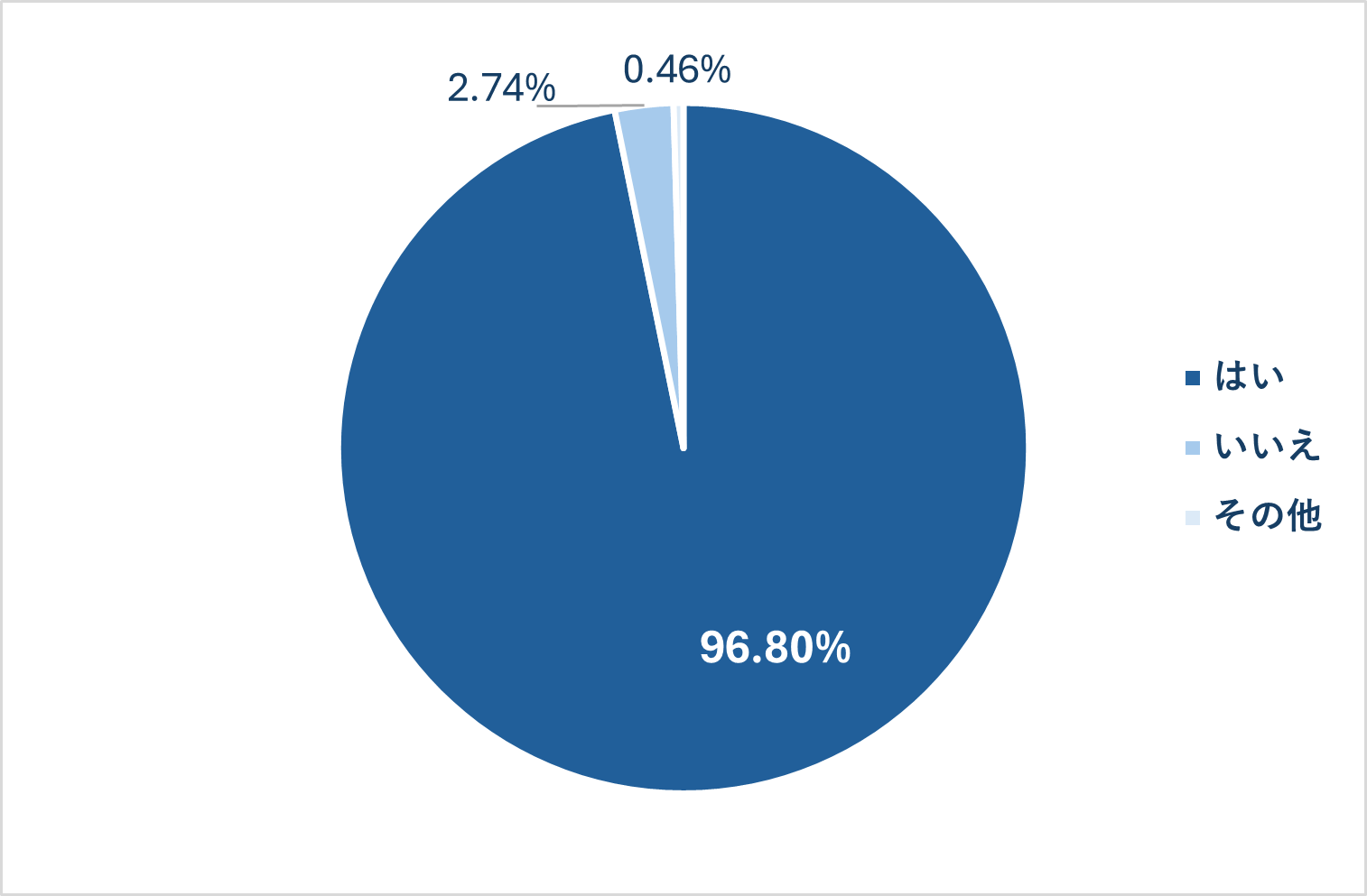 結果は「はい」と回答したお客様が97.50%にのぼりました。この結果から、スタッフの対応に広い信頼をいただいていることが分かりました。